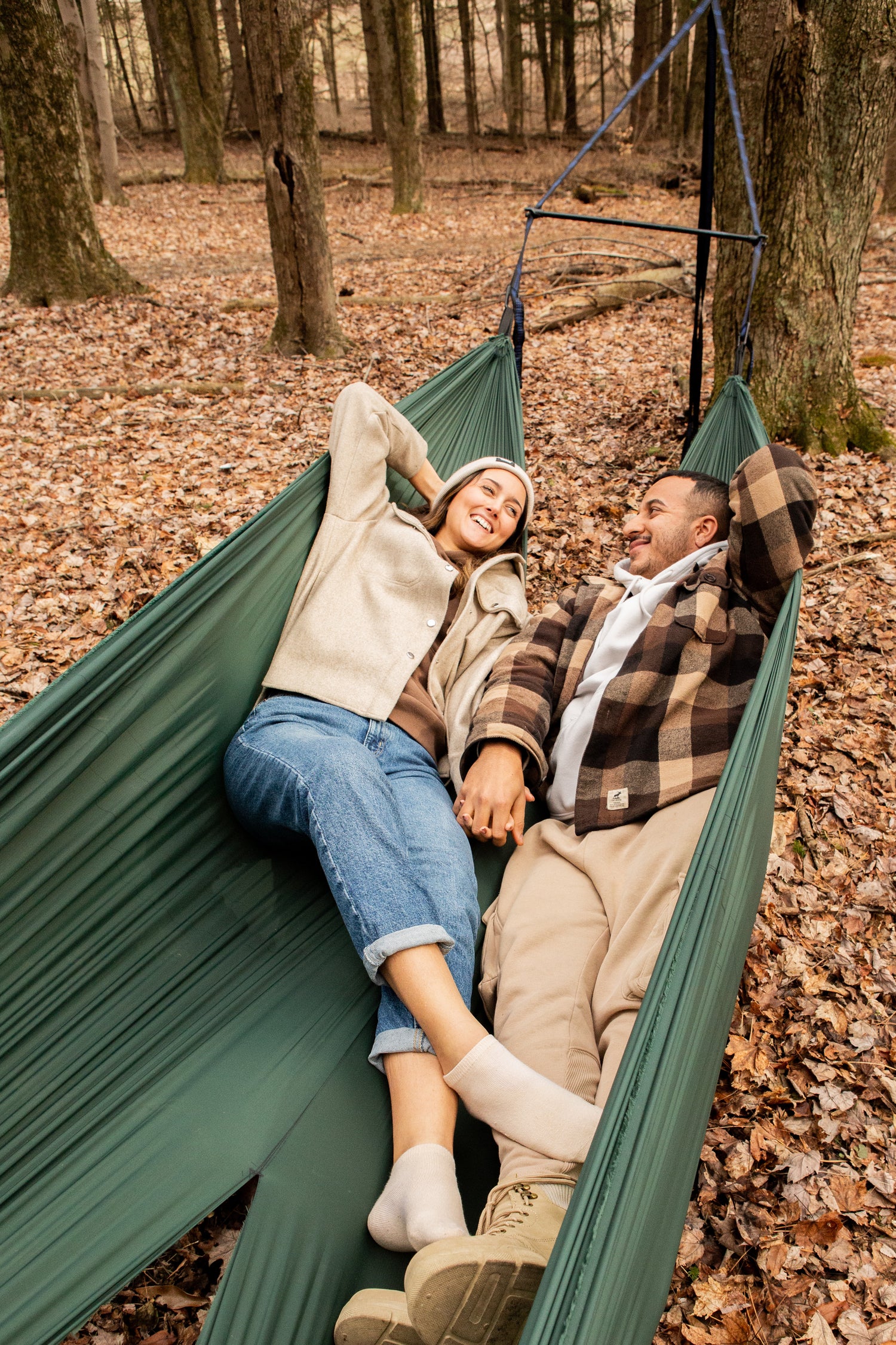 We believe that adventures are best when shared. With this in mind we set out to create a hammock that is easy to set up and best of all can be shared by 2 people. With its patent pending design you have your own space which supports you like a regular hammock, but keeps you face to face with your fellow adventurer.