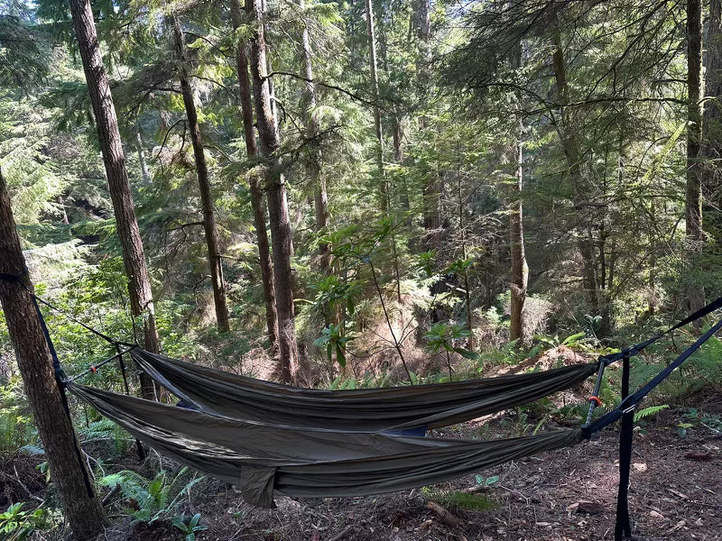 Built out of a love of the outdoors and togetherness. Hammock Duo allows you to spend time face to face with your favorite hammocking partner. With its patten pending design you have the best of both worlds. You have your own space yet you also can spend time face to face with your partner.